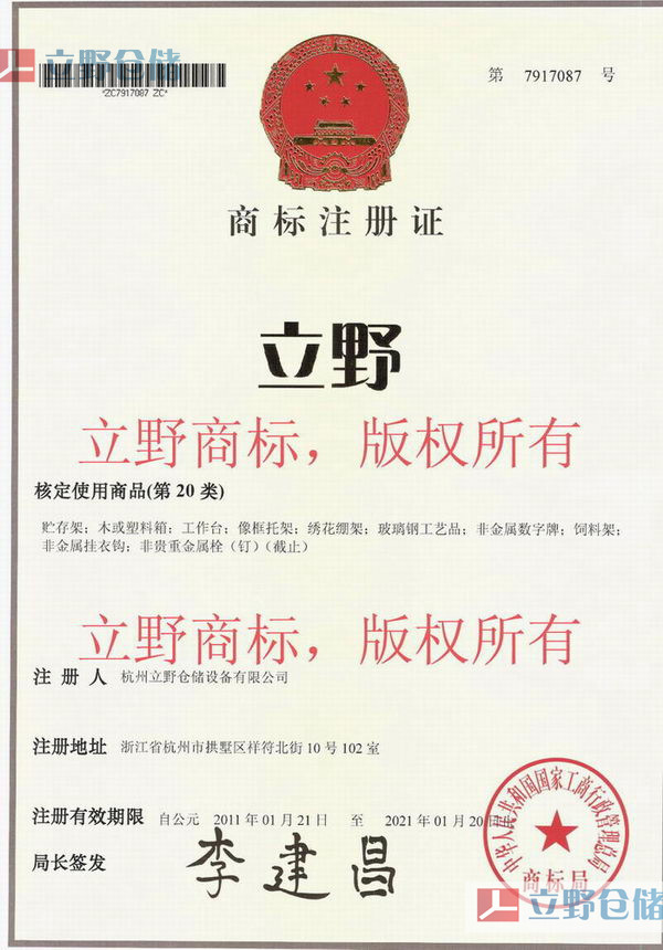 立野®倉儲自成立以來,專注于為企業用戶提供倉儲貨架的優化與設計方案,已經為數千家企業解決了因外在因素而得不到庫容最大化利用的問題。并為此注冊了立野®商標對外進行宣傳推廣。因此我們特別憎恨這種投機取巧不勞而獲的做法,同時我們也相信,通過虛假宣傳堆徹起來的公司,并不能真正成為高效合格的倉儲貨架供應商。請廣大客戶采購貨架時,請認準立野®品牌,辨別名稱的真偽,以免遭受損失。也歡迎各位朋友發現冒充立野®品牌的,可向我司法務部舉報,舉報電話0571-86572457